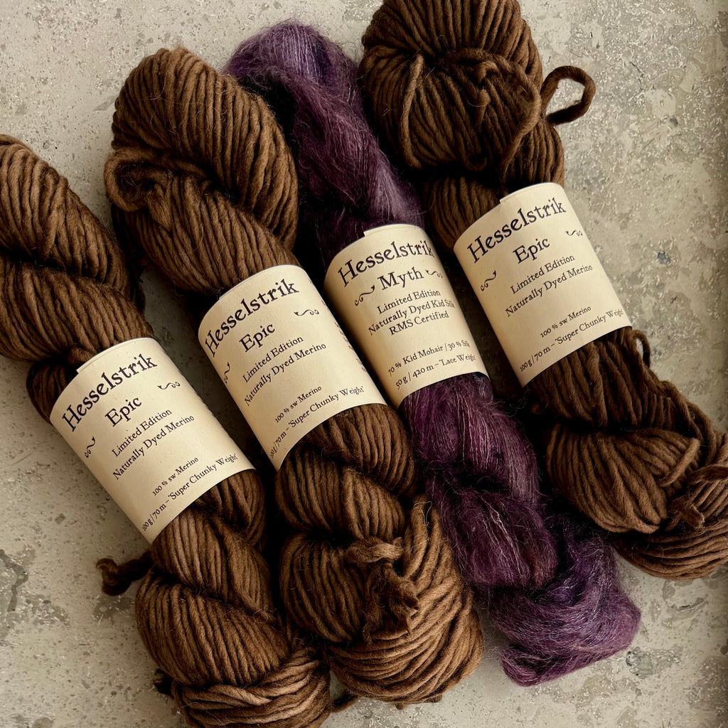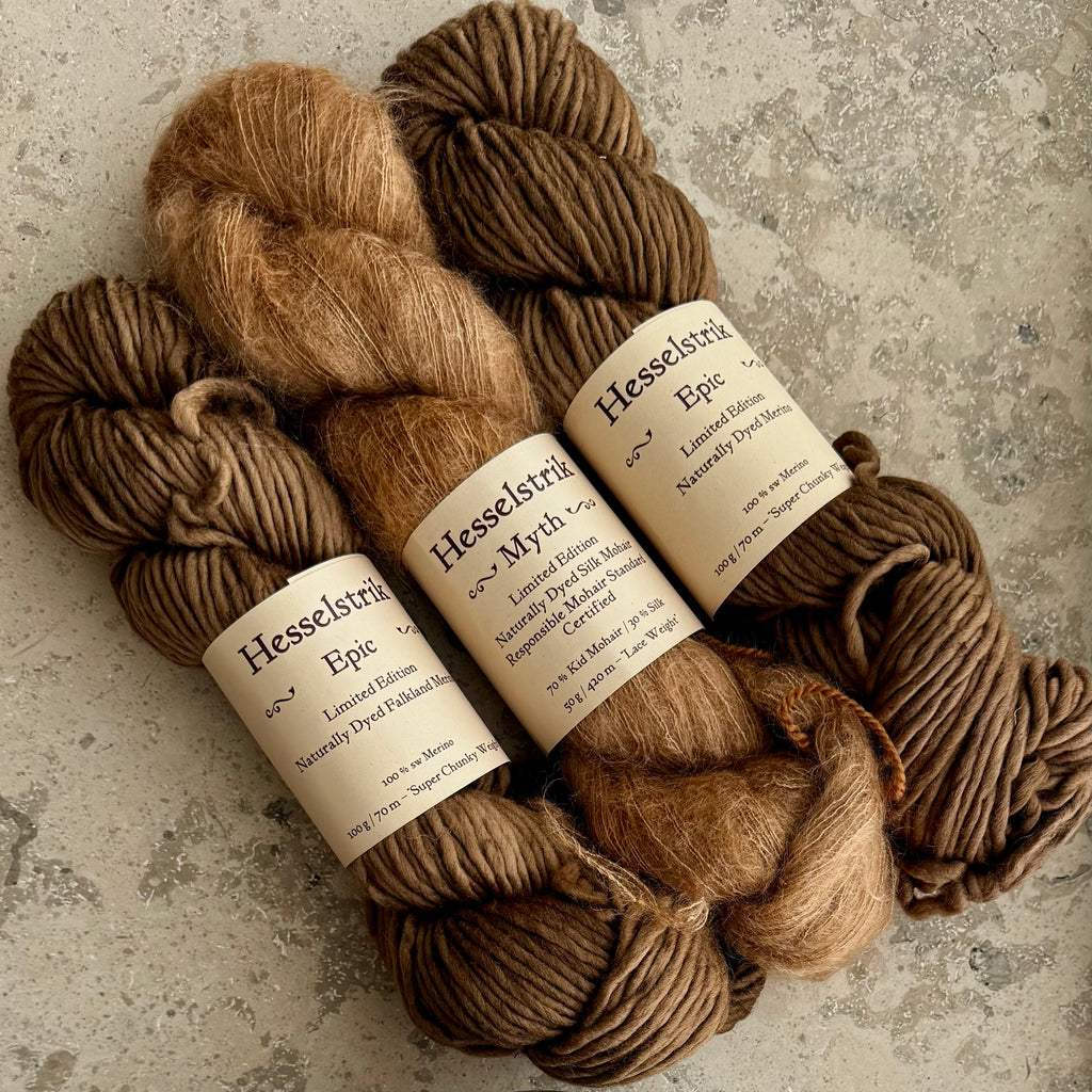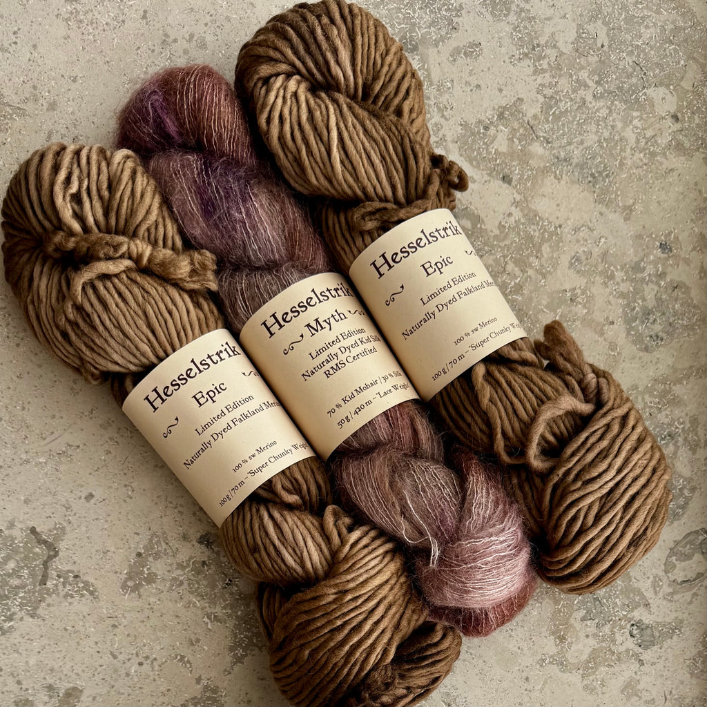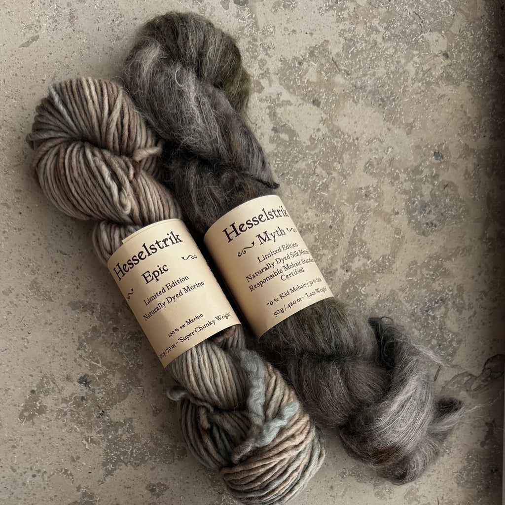 - Hesselgarn Epic Alpaca (2-trådet) 100g/100m + Myth (model vist i fv Demetrius og Cleopatra)