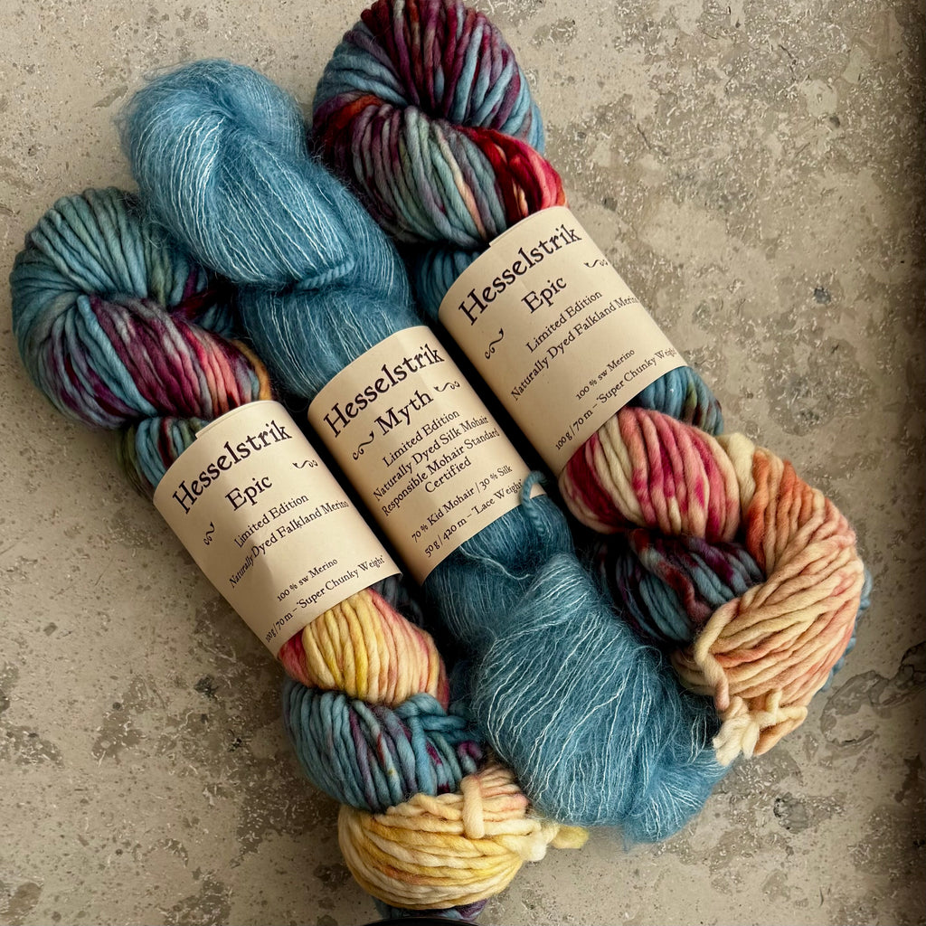 - Hesselgarn Epic Merino Single 100g/100m + Myth (model vist i fv Feste og Feste)