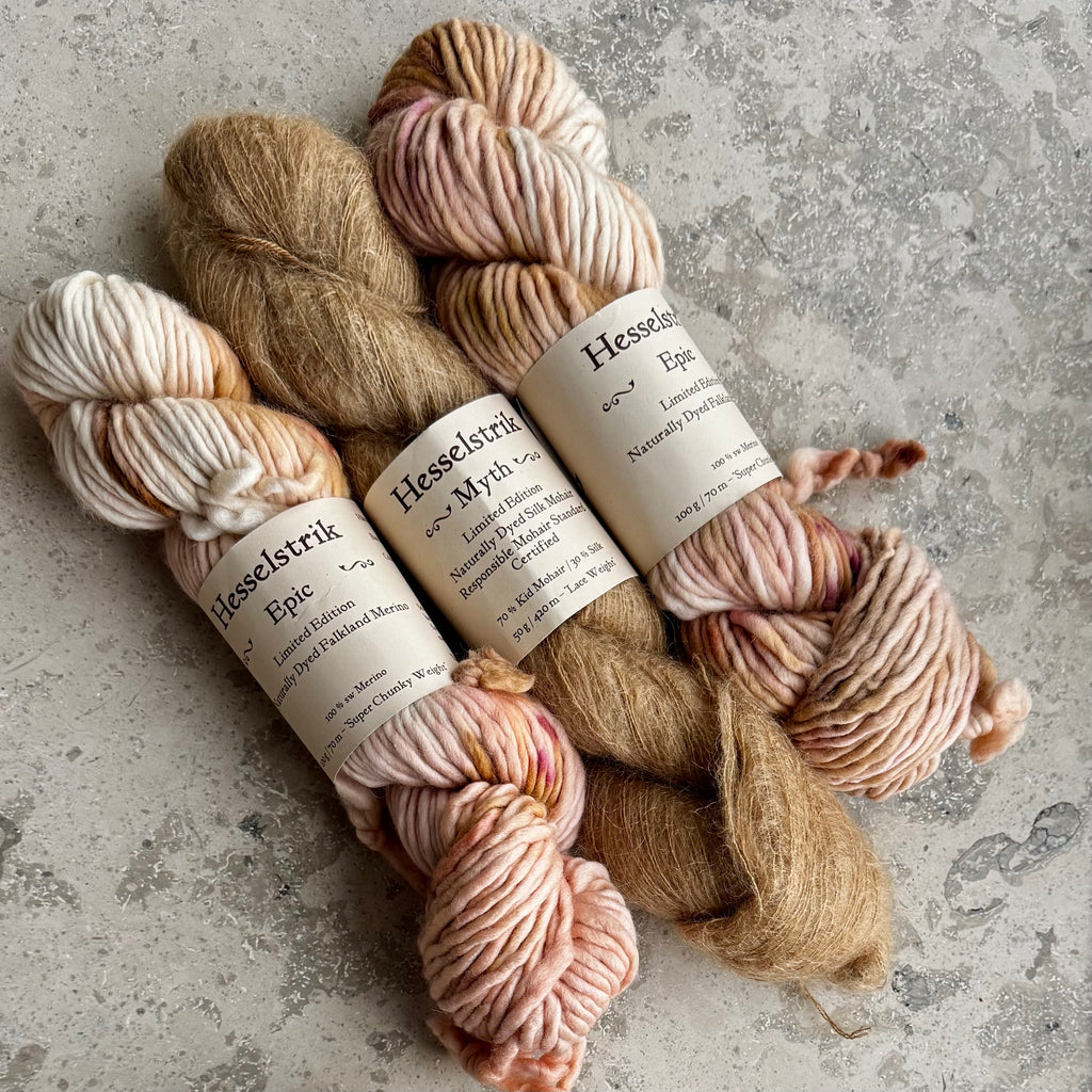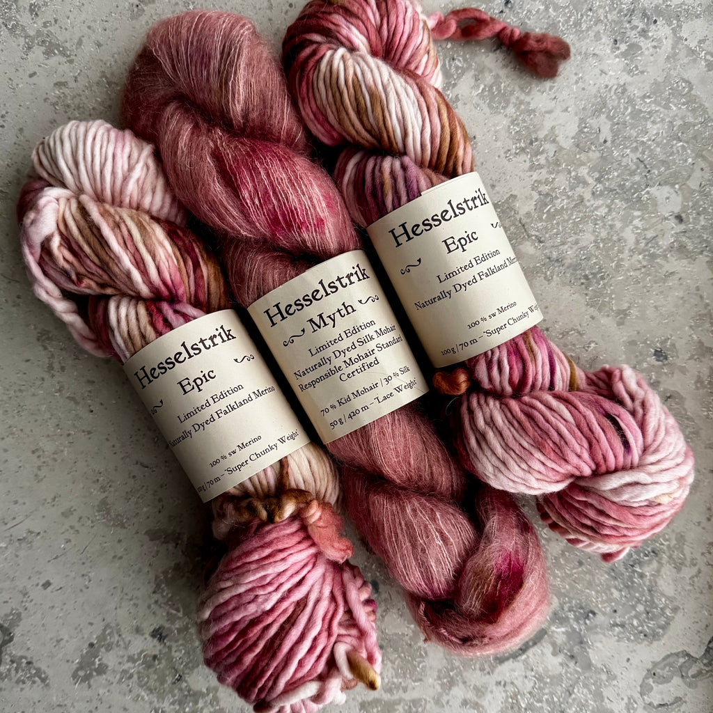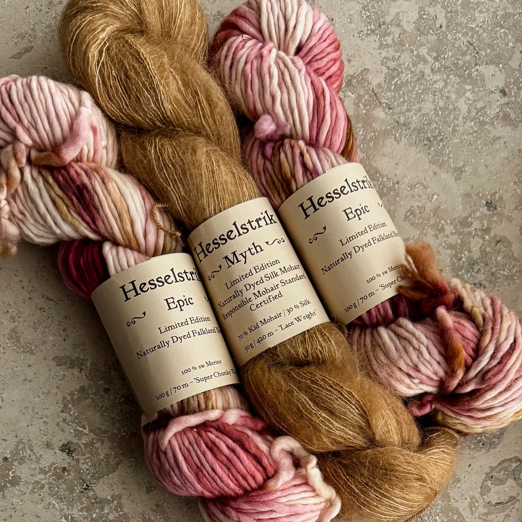 - Hesselgarn Epic Merino Single 100/70m + Myth (model vist i fv Peckish Flamingo og Peckish Flamingo) (Originalgarnet)