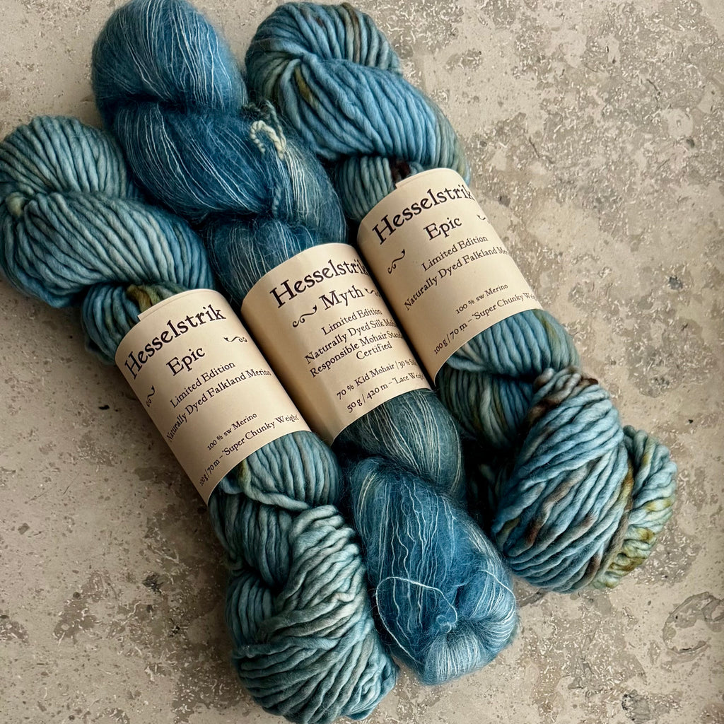 - Hesselgarn Epic Merino Single 100g/100m + Myth (model vist i fv Feste og Feste)