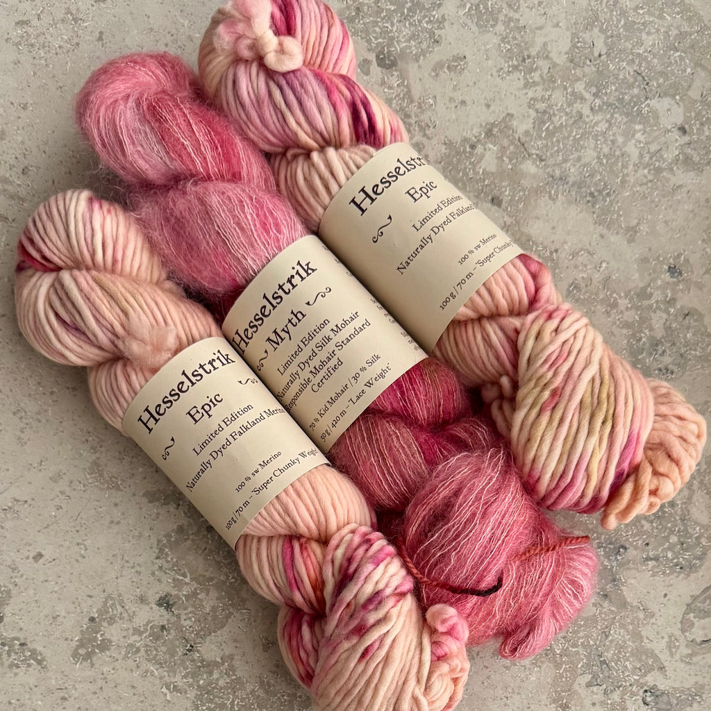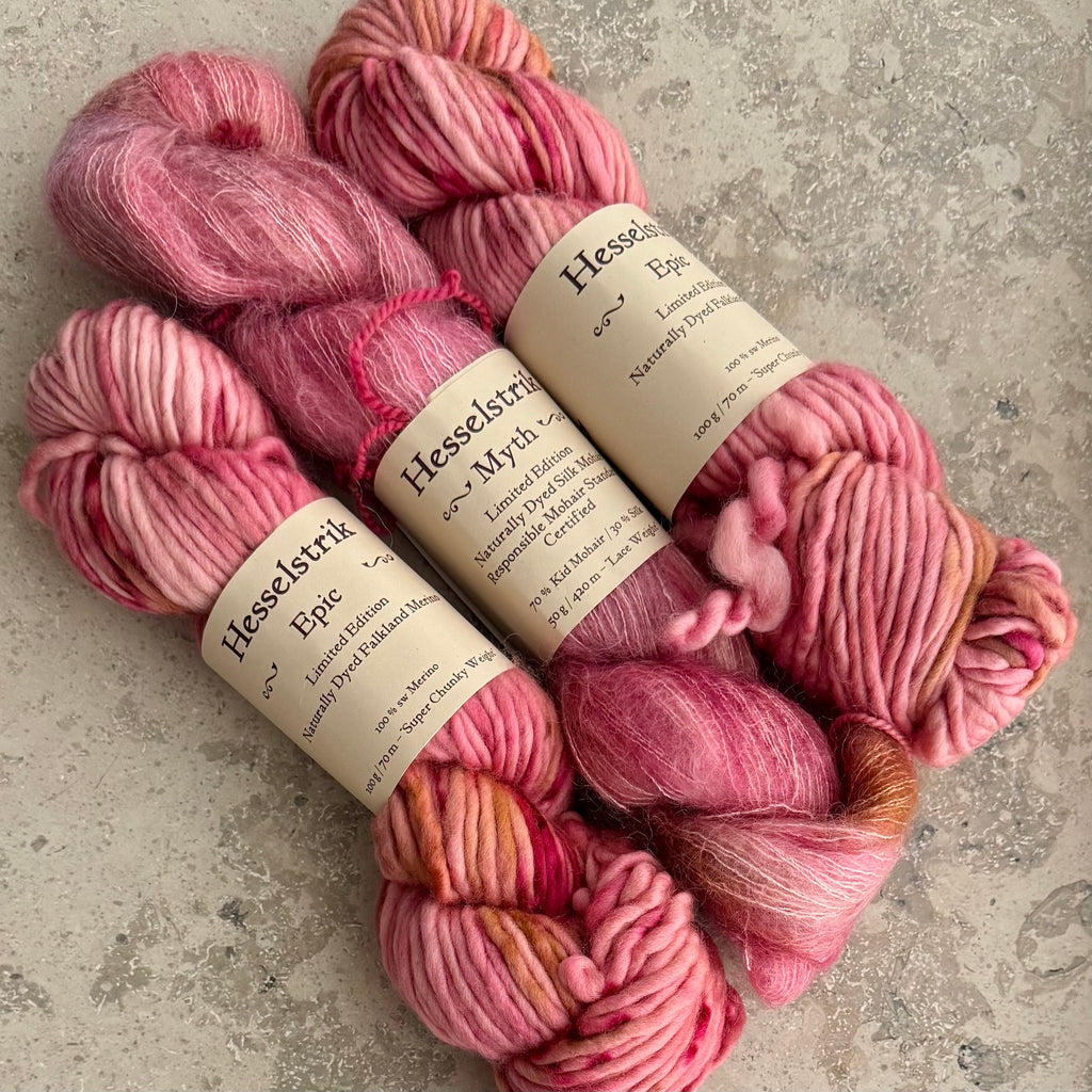 • Hesselgarn Epic Merino Single 100/70m + Myth (model vist i fv Peckish Flamingo og Peckish Flamingo) (Originalgarnet)